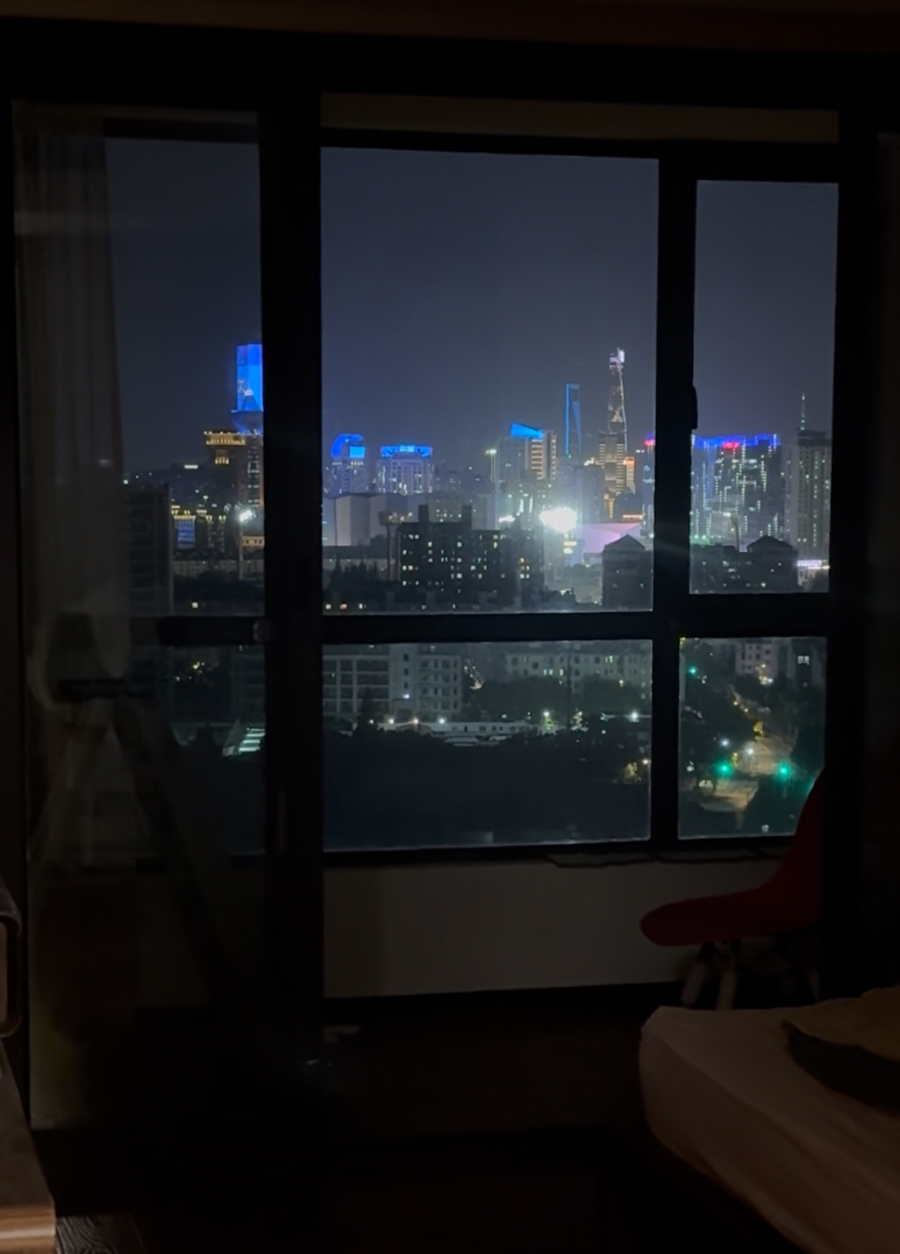 站在窗边可以看到,这栋居民楼前方没有高层建筑,目测灯光高度超过前方其他建筑,因此才照射进居民家里。而记者在该小区走访发现,整个小区环境静谧,路灯光线较暗,站在楼下也看不到高层窗外有如此强光照射。